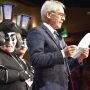 Der zweite Rücktritt des Abends! Das Publikum verneigt sich vor den abtretenden Bängg und das Comité-Signet im Schauspielhaus tut es auch.