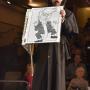Bevor wir beginnen, zwei Randbemerkungen: Erstens lesen Sie hier meine subjektive Meinung über die dargebotenen Bängg. Eigentlich wie immer. Wenn Sie sich ein eigenes Bild über die Qualität der Comité-Bängg  machen wollen, so finden Sie auf www.schnitzelbankbasel.ch den ausserordentlichen Service des Schnitzelbangg-Comités: Alle Bänke einzeln auf Video…! Grossartig für alle, die kein Ticket erhalten haben oder längst wieder in Übersee sind. Und zweitens eine Anfrage ans Comité: Es müsste doch machbar sein, dass die Plätze an den Tischen nummeriert werden können. Es ist offentbar jedes Jahr ein Gezeter, bis alle am Tisch dort sitzen, wo sie möchten. Nicht einmal vom Comité vorreservierte (und selber bezahlte!) Plätze werden respektiert. Frech setzen sich Leute neben das „Reserviert für fasnacht.ch-Schild“ und werden dann noch grantig, wenn man sie höflich bittet, für den Fotografen Platz zu machen… Meine Nachbarin Silvia regt sich mordsmässig auf und  mit ihr die ganze Familie. Gottseidank können ein Glas Wein und gute Schnitzelbängg ihre Laune schnell wieder bessern…